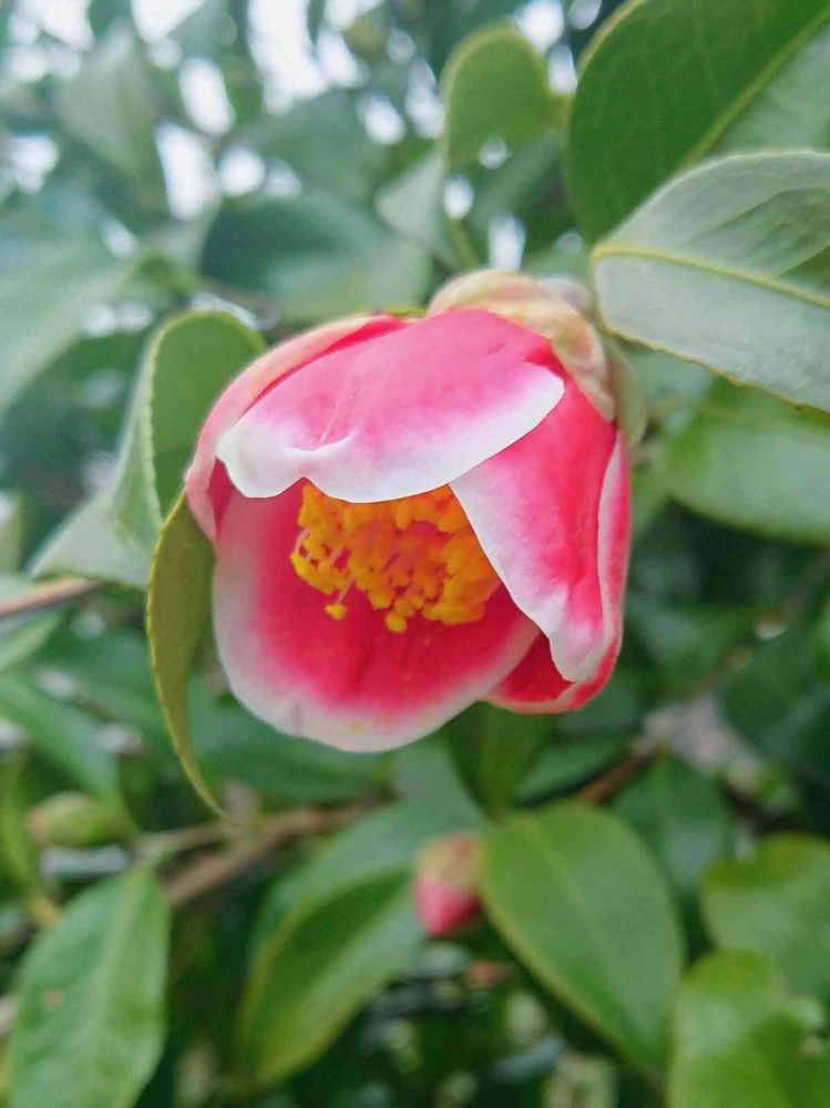 この椿さんは、あまり花びらが開かないタイプみたいで、それがいっそう慎ましやかな感じで素敵なんです。