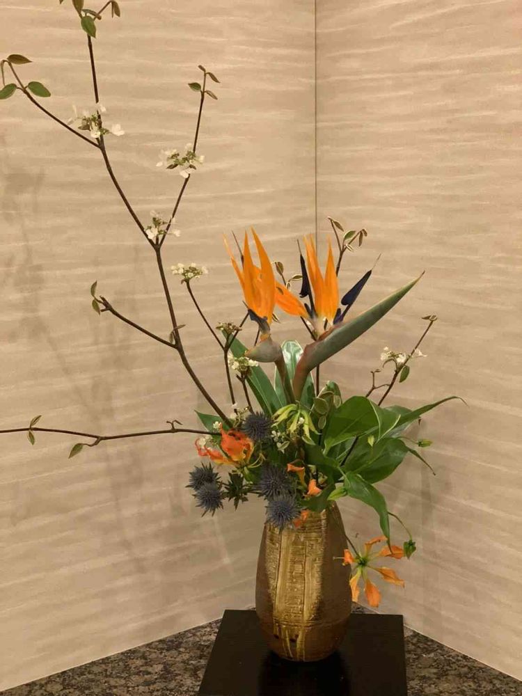 いつもながら、躍動感溢れるステキな生け花ですね〜。お母様、お見事です!