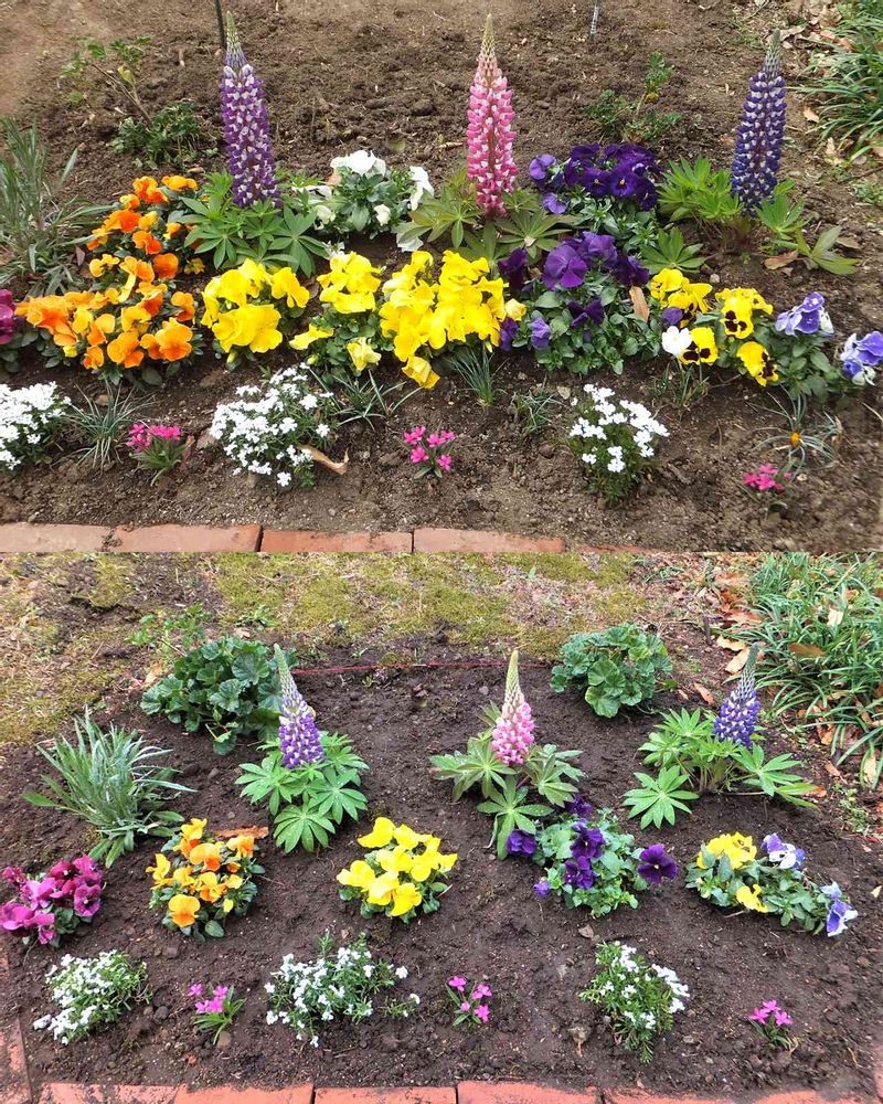 あまり目立ちませんが、ピンクのルピナスの右中ほどのお花が無くなっているのず残念です。鳥がいたずらしたのかな? 🤔