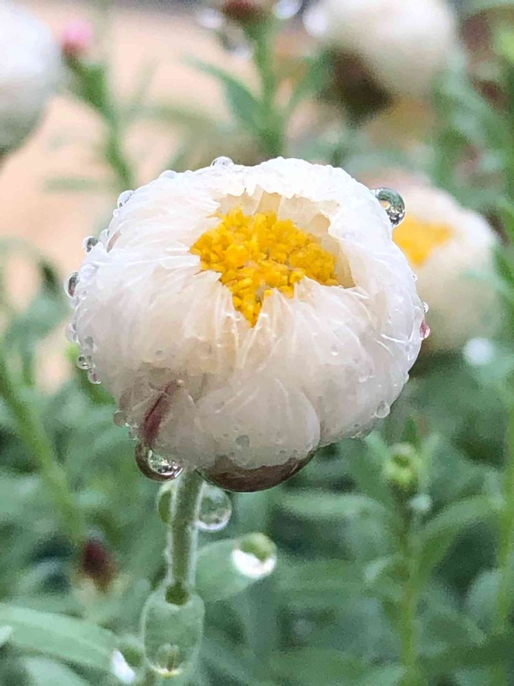 まんまるの花かんざしが雨に濡れて素敵でしょ😍😍