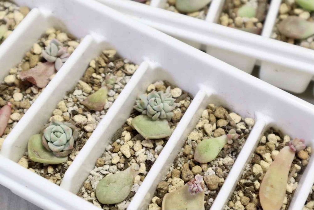 使わなくなった製氷トレーの区分けを利用して葉挿しの多肉さんを育てています😊