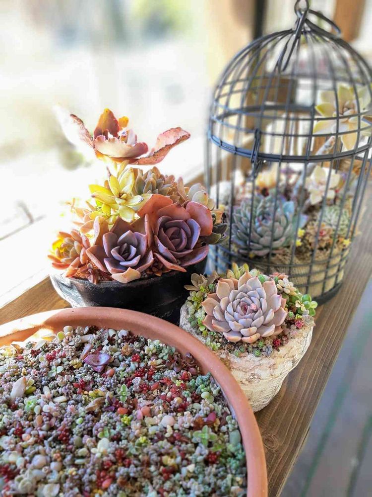 手間の鉢は……つぶつぶ寄せ植えですか?めっちゃちっちゃいけど可愛い〜♥️