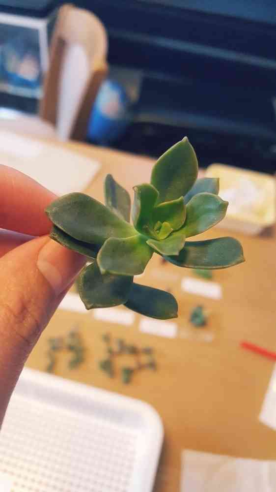 カット苗で、まだ幼い多肉植物なのですが、誰か名前が分かる方、いらっしゃいませんでしょうか??
