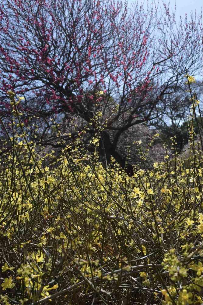 黄色い花には立て札にキンシバイと書いてあったのですが、オウバイじゃないかとのご指摘がありました。確かに調べてみるとオウバイの方が正しい気がします。他にもオウバイモドキなる物もあるようで、似たような花がたくさんあって私には判別ができなくてすいません。