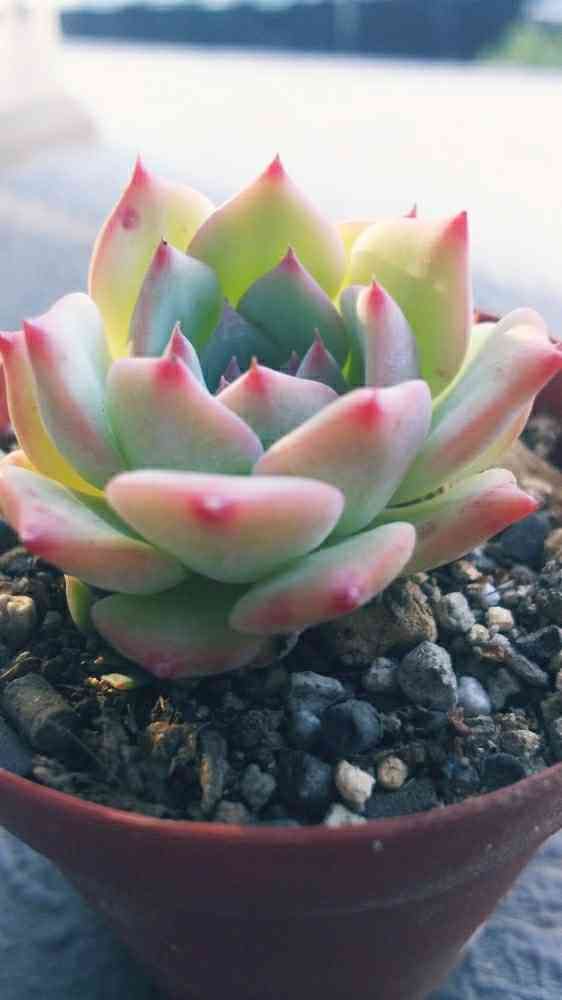 この多肉ちゃんも今年の6月から8月にかけて☆にしてしまった多肉ちゃんの2代目😅。☆になった多肉ちゃんもとても⤴️⤴️可愛い💖娘に出会えたのですが2代目も可愛い💖娘に出会えたので嬉しい😆⤴️💓赤のつめがたまりません😍
