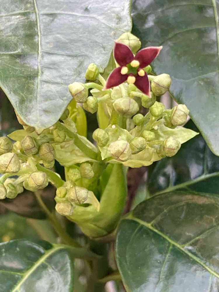 数日前から膨らんでいた蕾が開きました。アオキの花を見るのは初めてです。これもGSのおかげかな?