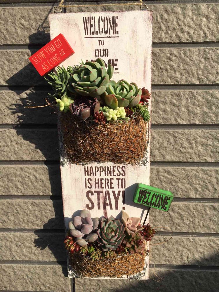 腰がヤバイけど…今は薬が切れてお腹も痛い…( ; ; )友達が作ってくれたタブロー&ピックを使って寄せ植え完了〜