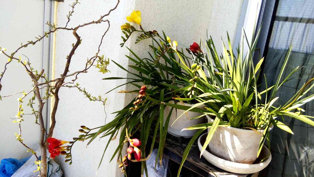 バルコニー/ベランダ,フリージア,雲龍柳の投稿画像