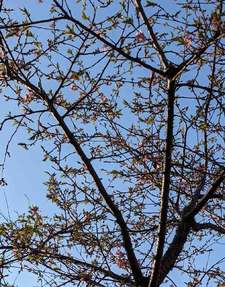庭の河津桜。遠目にも木全体がピンクがかってきました。🌸
