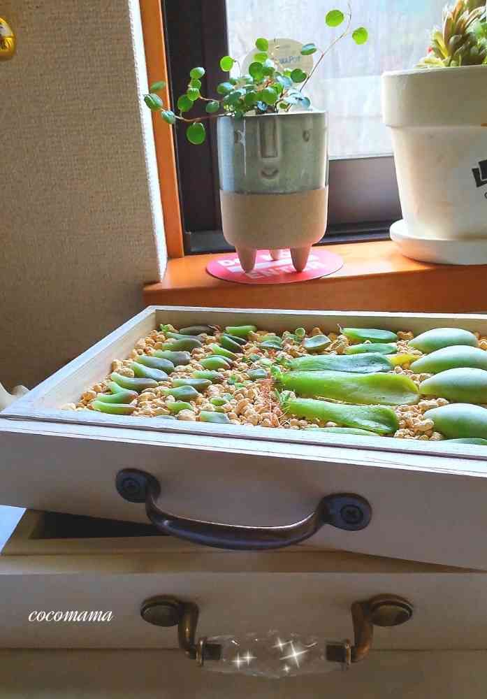 小さな鉢に葉挿し並べるより引き出しの方が断然いいよ(๑˃̵ᴗ˂̵)و ヨシ!