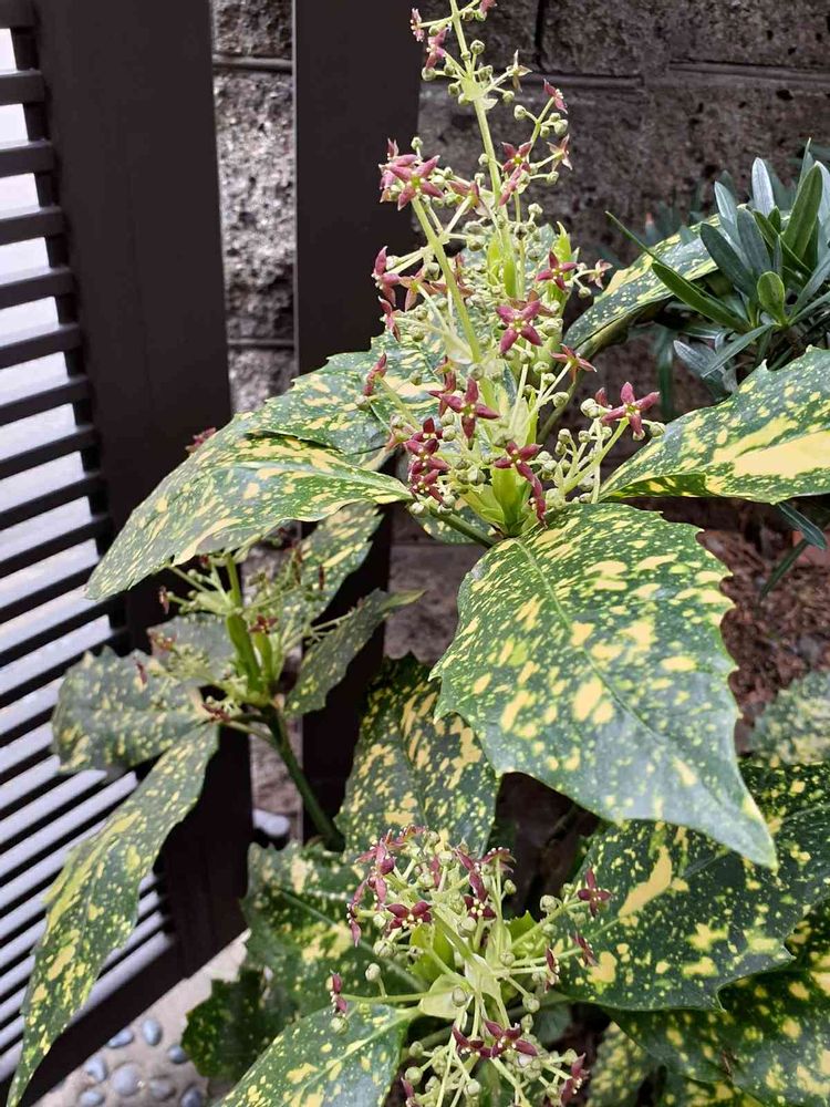 斑入り青木の花、すごく元気に咲いていてカッコイイですね😄👍💕🎶