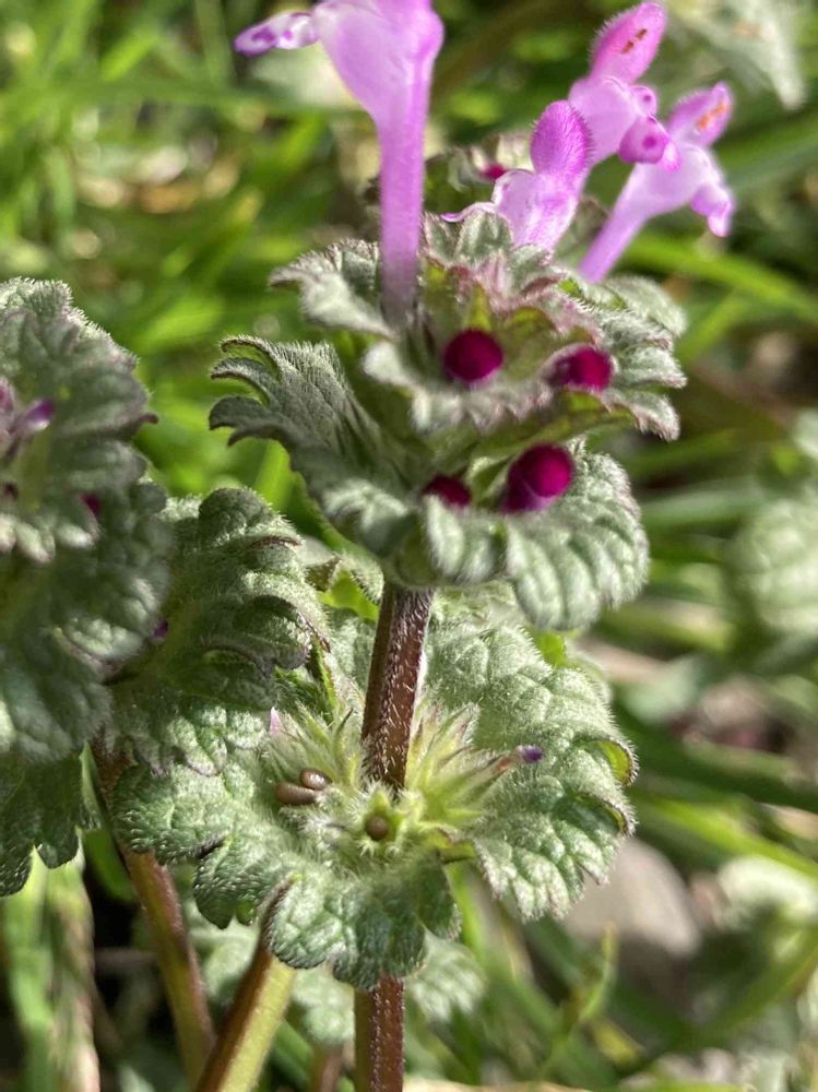 近所の今は何も植えられていない畑にもピンクのホトケノザがいっぱい咲いていましたよ👯
