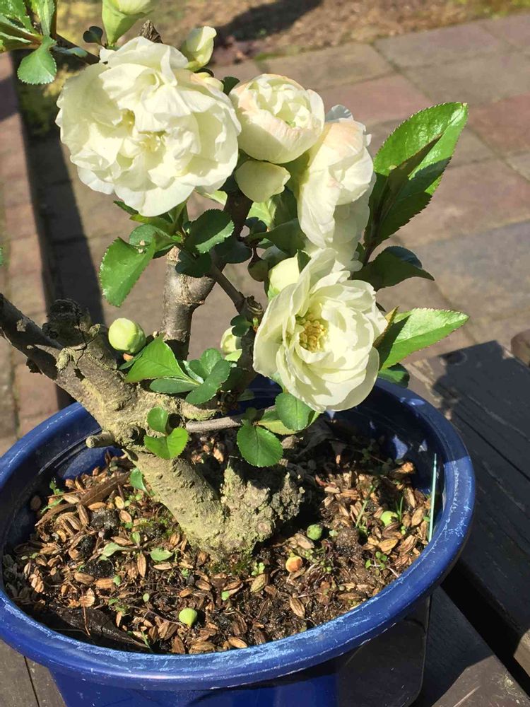 最近 急に、盆栽に興味が湧き、木瓜(銀長寿)を、お迎えしました。