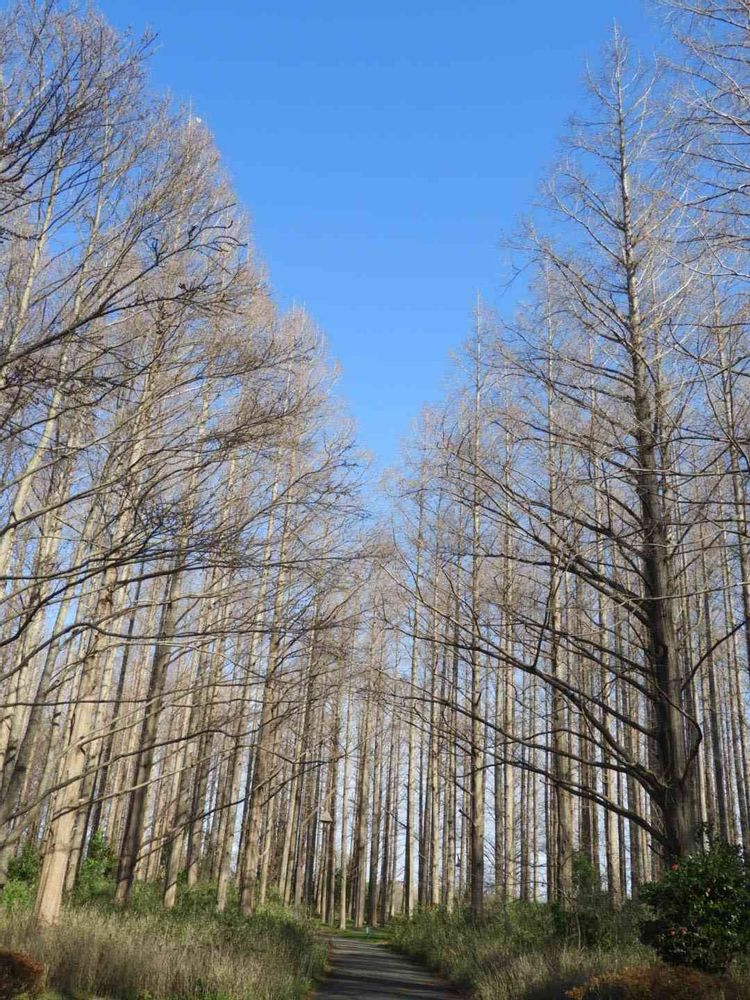 スッキリと晴れた空と、メタセコイアが、綺麗でした。