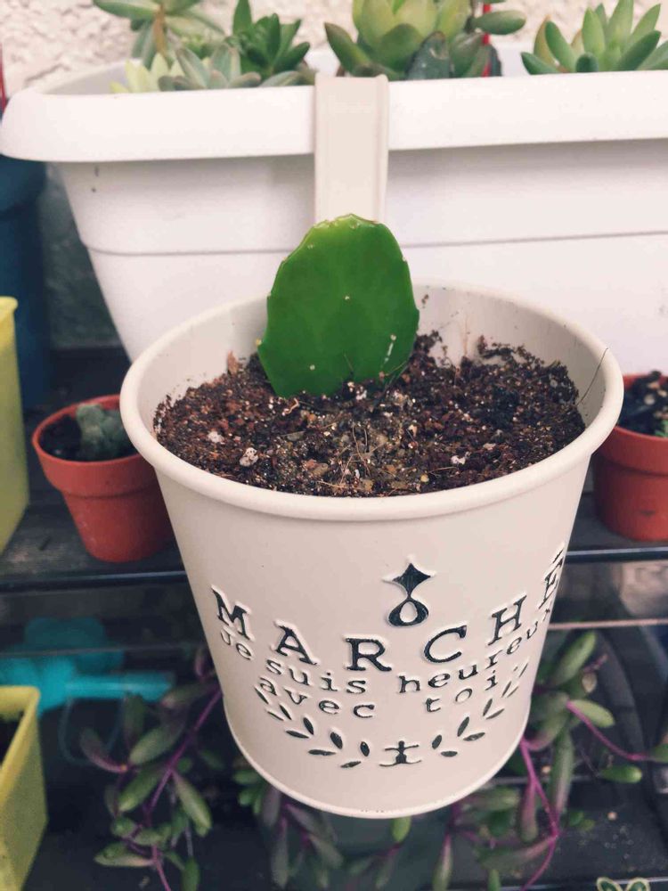 姫ウチワサボテン、脇から新芽が大きくなってきてしまったので、切りとって葉挿ししました(^-^)
