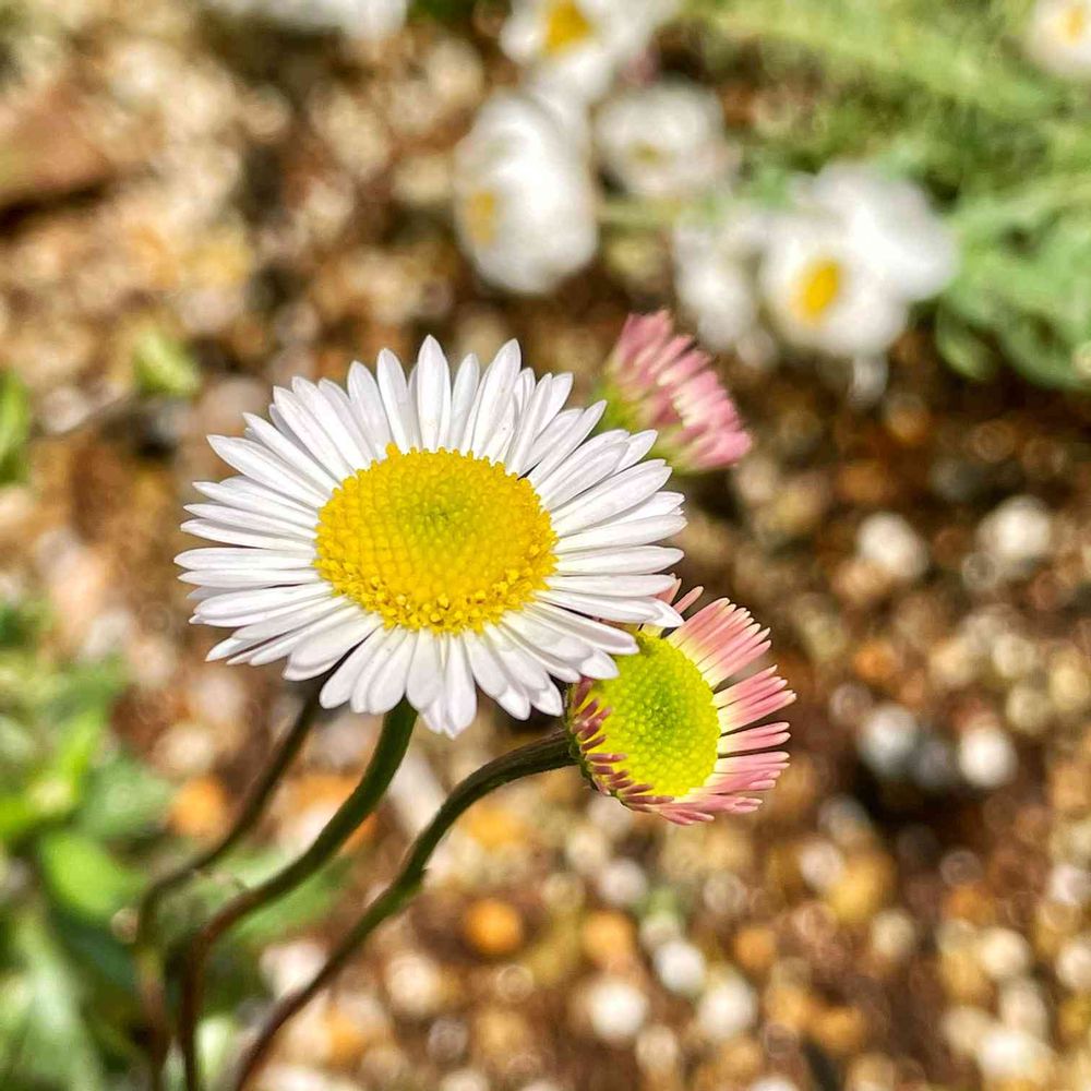 キク科の花で、花弁が白とピンクで可愛いです😊