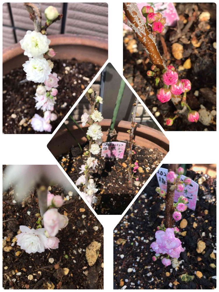 庭桜を一鉢に2本植えてあるのですが、蕾の時から色の違いが有り、どうだったかな〜?😔と思っていました