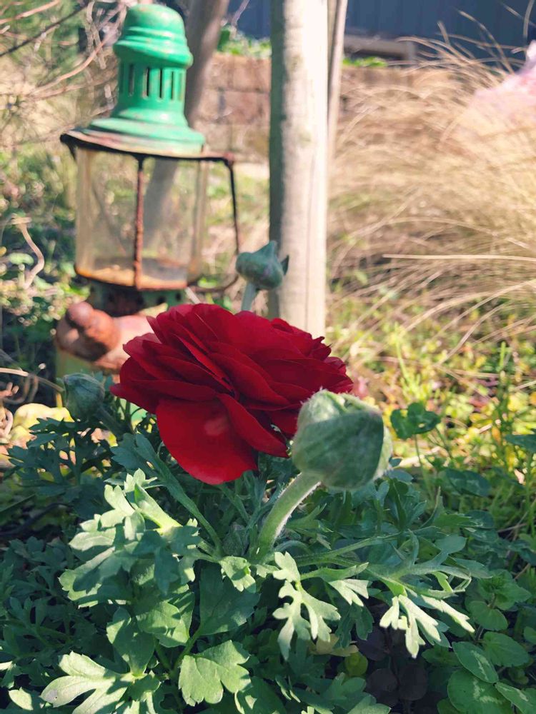 何色が咲くかわからなかったけど、深紅でした!うちの庭に初めての赤❗️