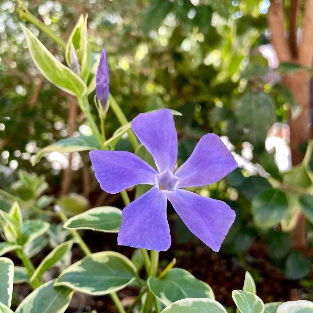 植栽スペースの斑入りツルニチニチソウも咲きました💜