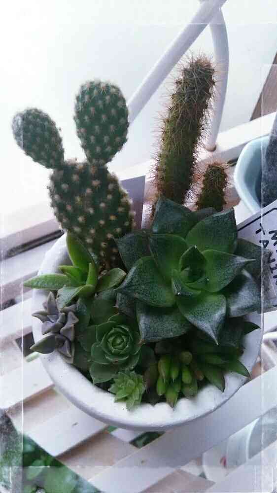 サボテン🌵と大和錦、センペルニュウム、爪蓮華など。