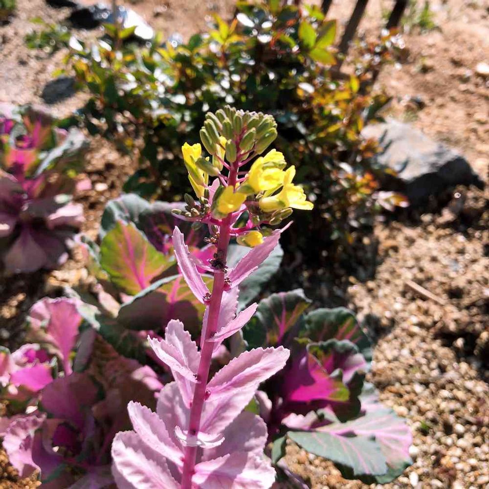 お庭いじりをちょっと怠ってたらいつのまにか葉牡丹がびよ〜〜〜んと伸びて花まで咲かせてる(^◇^;)