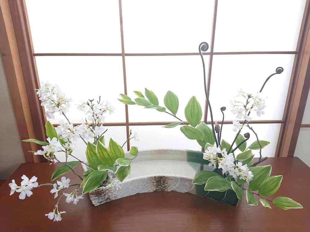 桜のお花、一つ一つがとっても綺麗に生けられていて素敵❤️ゼンマイも可愛らしい!くるくる❣️