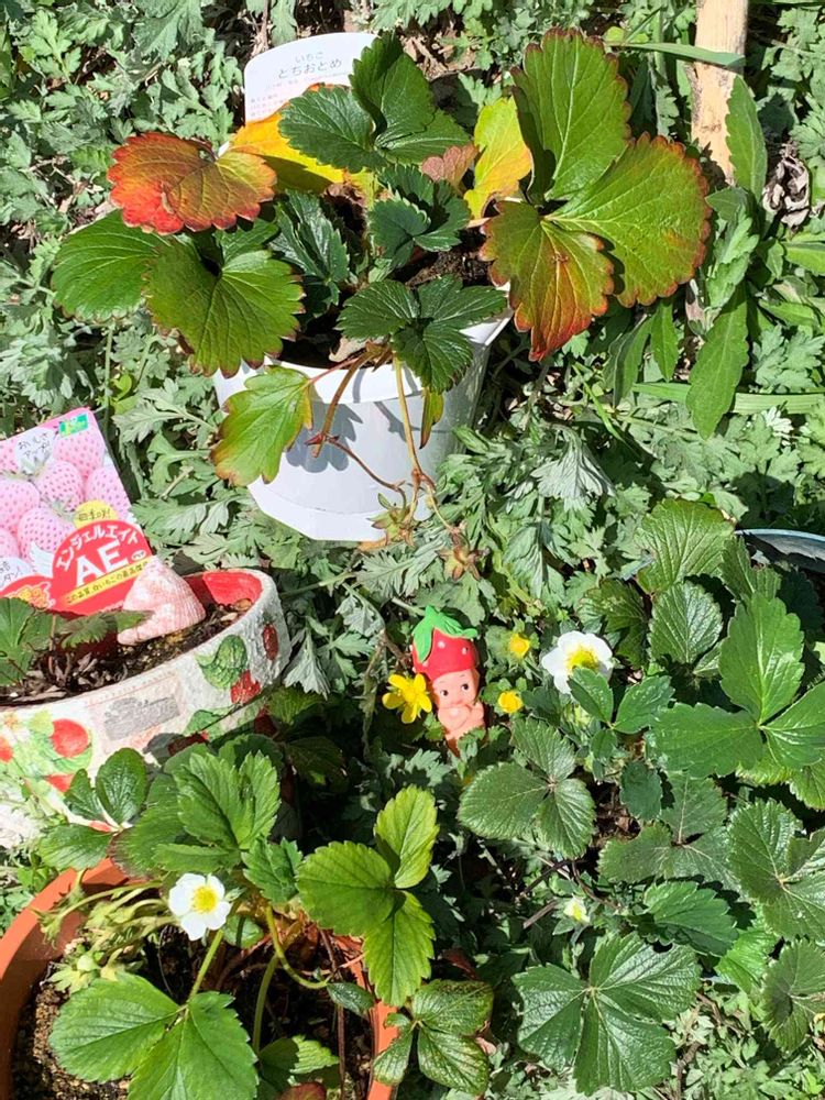 QPいちごちゃんが、埋もれてしまうぐらい、いちごの葉っぱがワサワサしてきたね💖