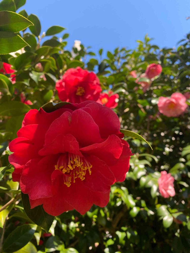 お隣さんのおうちの椿。