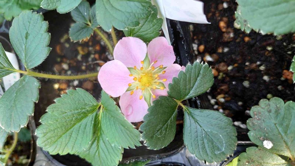 ピンク色のお花のワイルドストロベリー🍓って初めて観ました🌸🌸🌸🌿