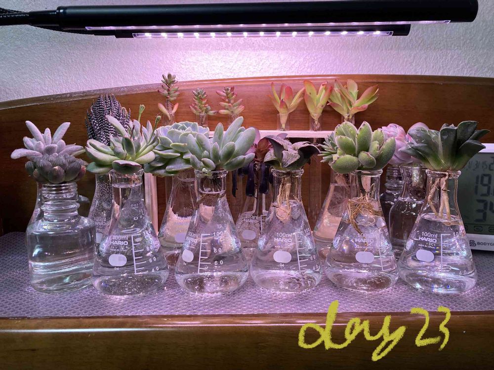 2021/2/21から自室で多肉植物の水耕栽培を始めました! フォロー大歓迎です! 自室は太陽光が一切差さないので、光は植物育成用LEDのみを使っています。 完全な初心者ですがよろしくお願いします!
