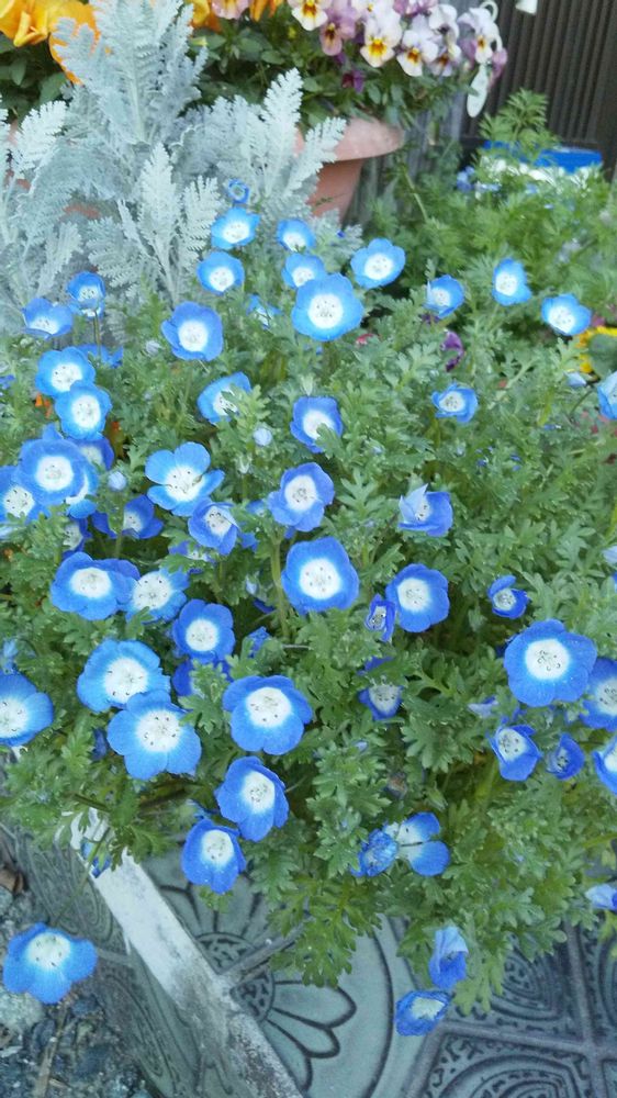 おはようございます😃種から育てて、毎日、モリモリに増えて、咲いているネモフィラ💖花が長く咲いてくれます😃庭にも植えたのでこぼれダネで来年も咲いてくれると良いな〰️💖