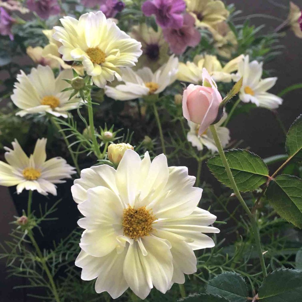 ソフトイエローのコスモスに囲まれてみました😻