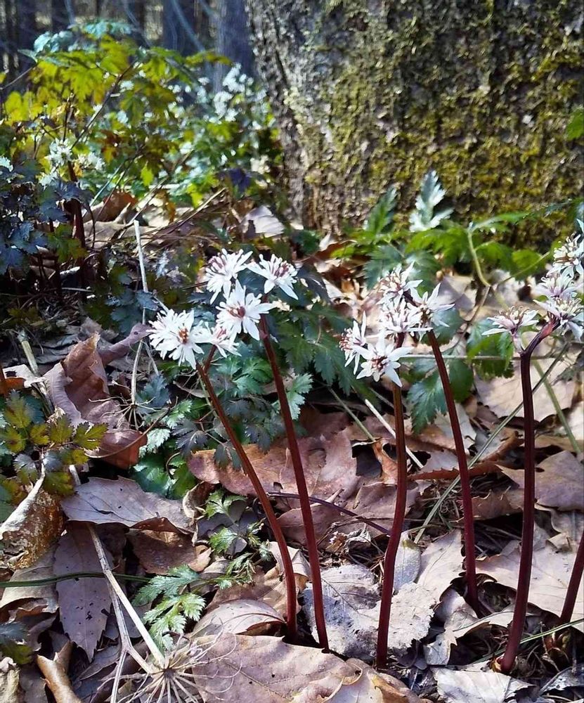 杉林の中にひっそり咲くセリバオウレン まさに春の妖精✨✨🧚♀️ 嬉しかった~❤️