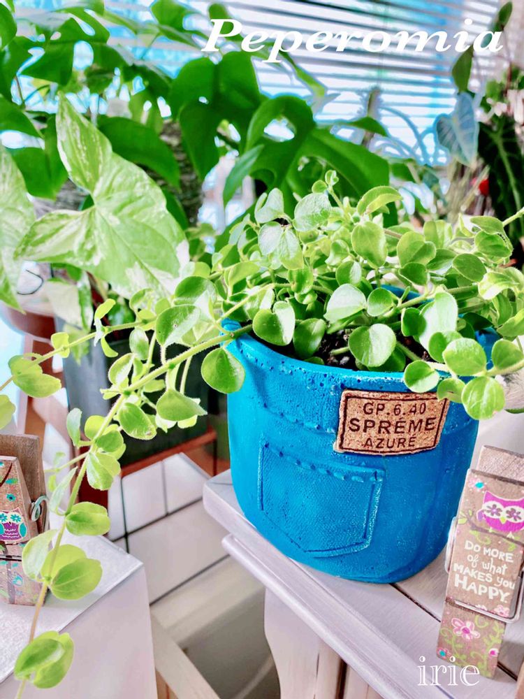 本当にデニム鉢のBlue💙とペペロミアのグリーン💚が凄く爽やか🌱😊👍💖