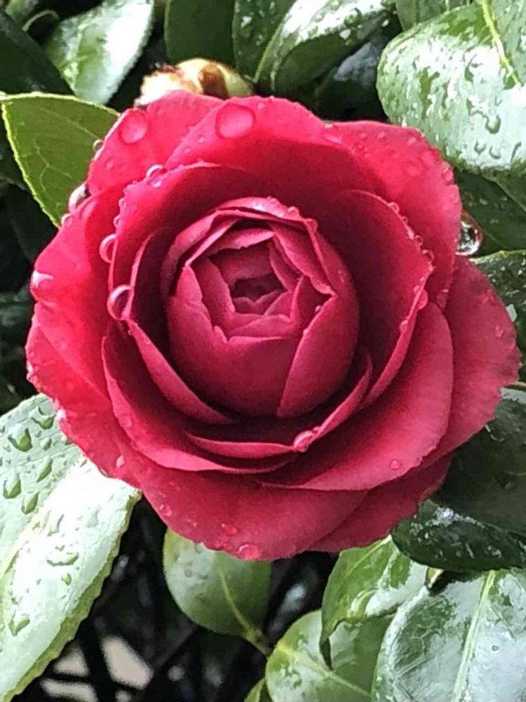 乙女椿の紅色‼️素敵な色合いが雨に濡れて艶やかですね~🎵