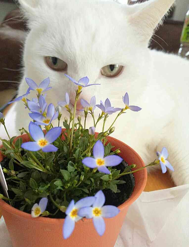 ヒナソウと猫さんがキュートですね😉💕💕💕