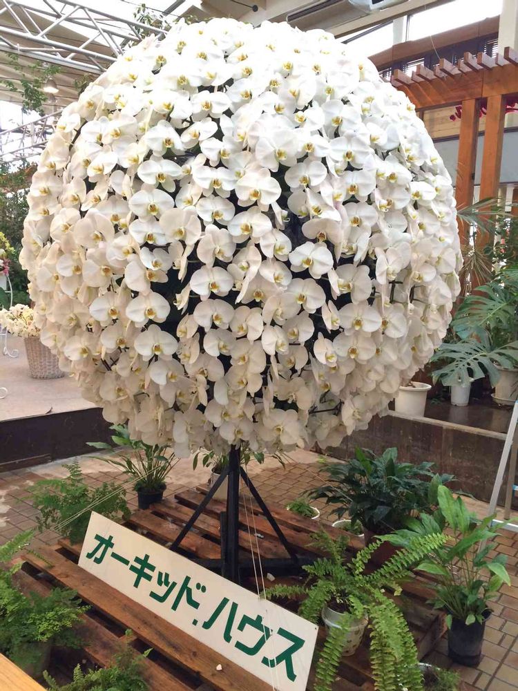 さん 両手を広げたほどの大きさの蘭の球体があったら写真撮っちゃいますよね!近々蘭のコンテストがひらかれるみたいでそのために設置してあったみたいです。1つのお花も枯れていなくて圧巻でした。