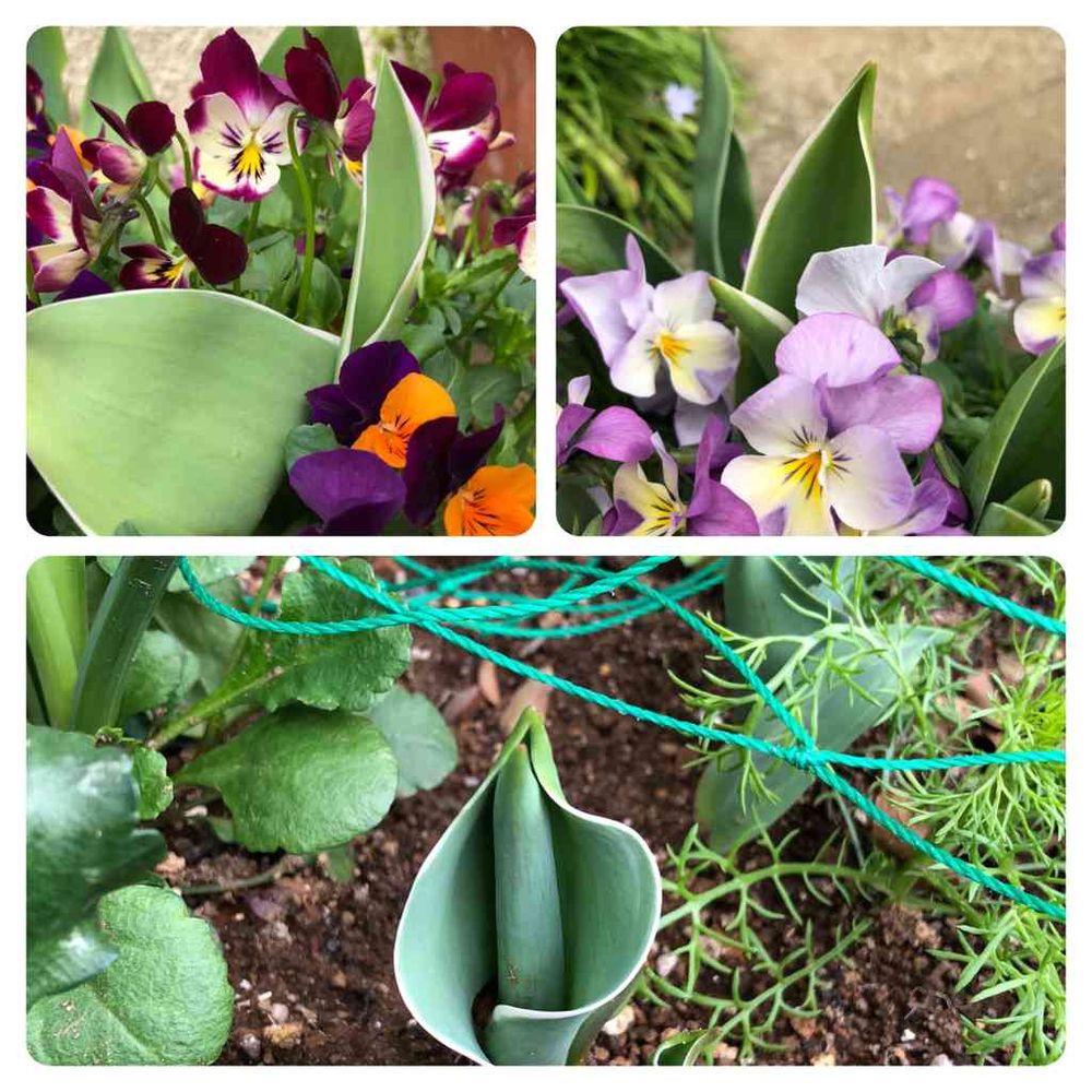 沢山植えたチューリップの葉っぱに白い縁取りが…