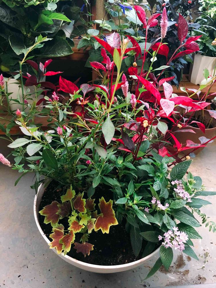 寄せ植えに秋の趣を!左下のもみじ葉ゼラニウムが新入り🍁