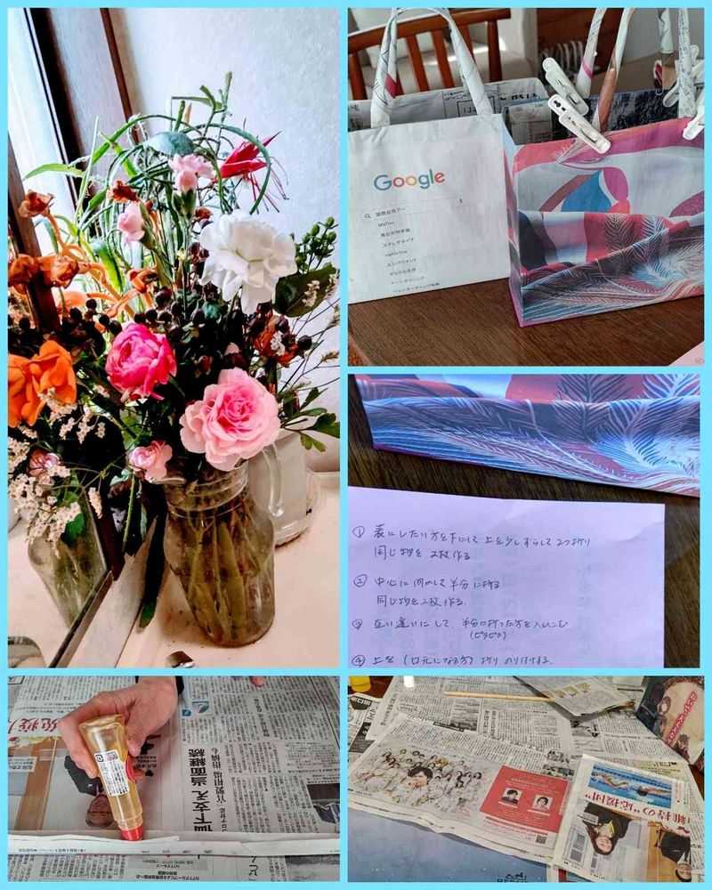 折っていましたが 新聞紙のエコバッグは初めて作りました。
