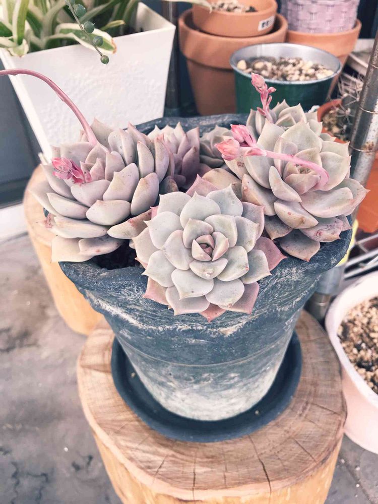 去年は真冬でも外だったからもっと濃いピンクだったけど、今年は室内に入れたから薄いピンクになったよ。