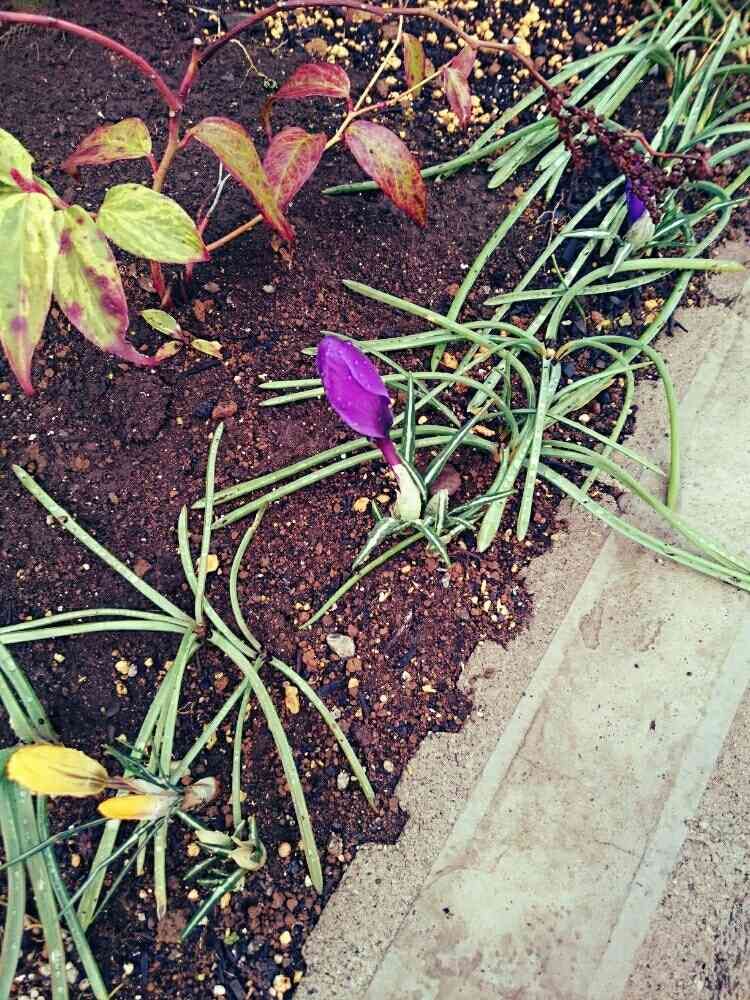 いよいよ春爛漫!雨も上がってにょきにょき伸びそう。クロッカス・紫も今日咲きそう。紫植えていたの忘れていてびっくり。
