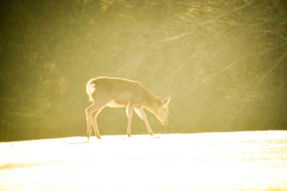 朝靄の中朝日を浴びた鹿が…🤗🤗