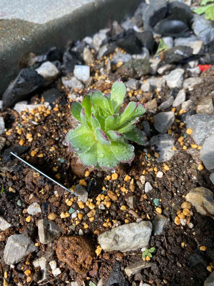 お外の砂利のとこに観葉植物用の砂を少し入れて植えてみました。