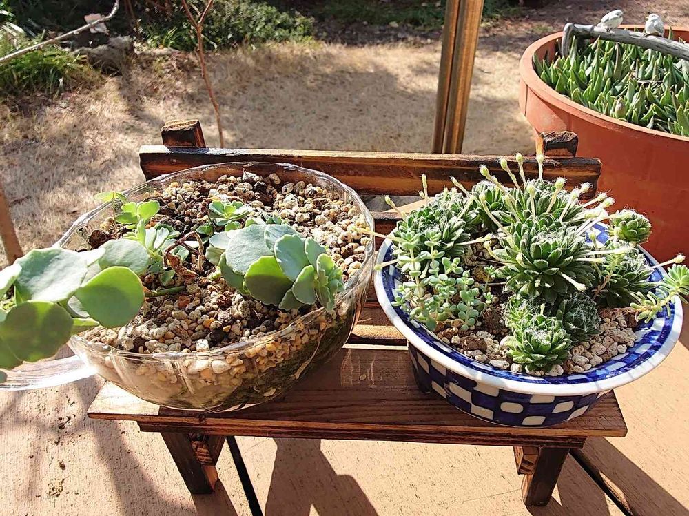 和鉢はアンティークショップで見つけてちゃんと穴開いてたけど、Tea cup ☕はガムテープ貼って釘とトンカチで穴開けた(後にユーザーさんのピックで穴の開け方見つけて…😭)