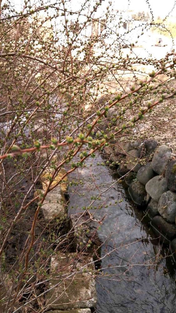 用水路脇のユキヤナギ、ポツリポツリと開花し始めました