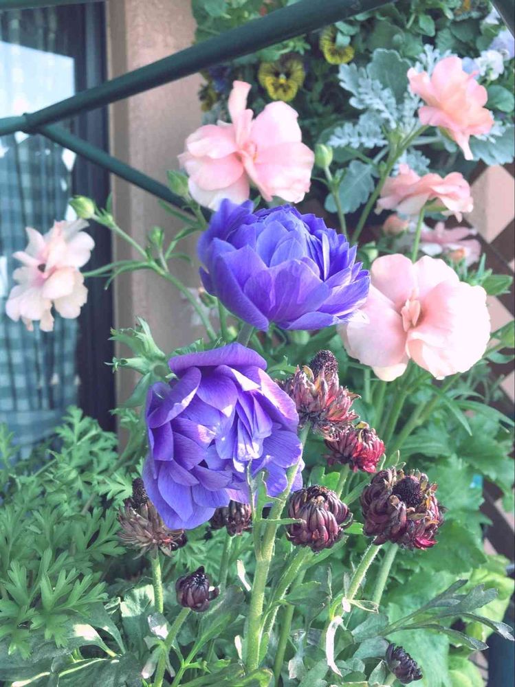 バルコニー/ベランダ,ラナンキュラス・ラックス アリアドネ,八重咲き アネモネの投稿画像