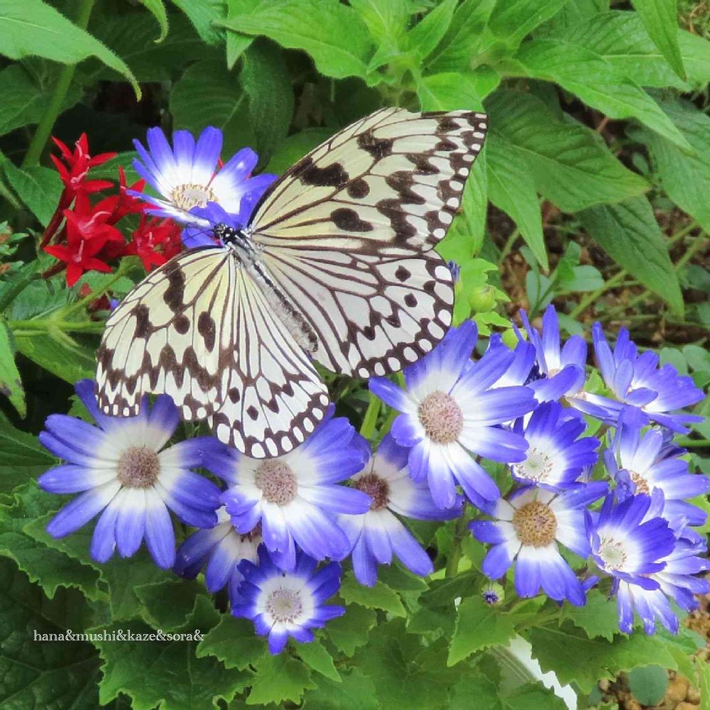シロクロのオオゴマダラさんはブルーのお花が似合っててウットリです😍✨💙