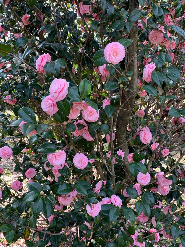 前に行った時はまばらだった乙女椿がこんなにモリモリに咲いていました〜