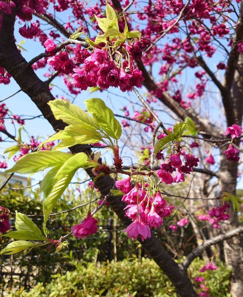 世田谷松陰神社で寒緋桜、緋寒桜か彼岸桜を、